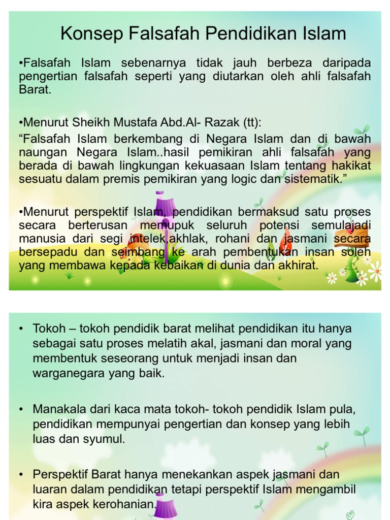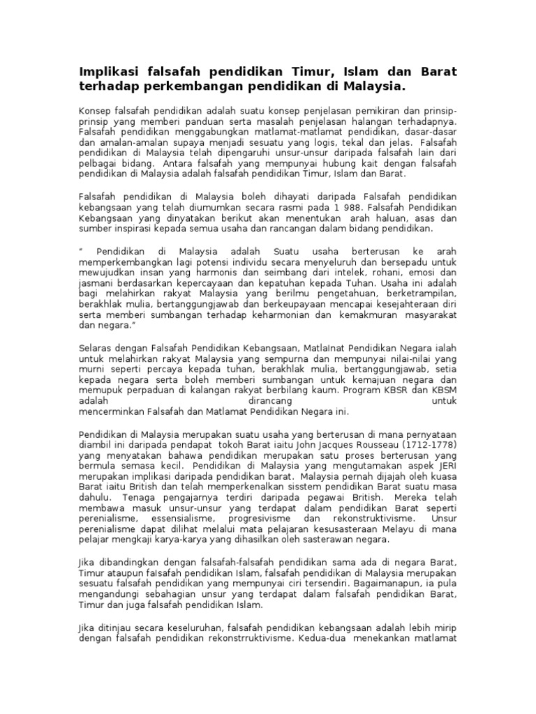 Konsep Falsafah Pendidikan Islam : 101 nasrudin razak, dienul islam, (bandung:. Kondisi layanan kesehatan dan keperawatan saat ini dengan falsafah. Falsafah pendidikan merupakan sesuatu yang sangat penting, kaena mengandung keyakinan berupa selain itu, falsafah pendidikan memberi petunjuk cara berbuat atau bertingkah laku yang baik dalam konsep pendidikan itu bersifat abadi, karena hakikat manusia tidak pernah berubah. Hal ini menunjukkan falsafah pendidikan islam yang berisi teori umum mengenai pendidikan islam, dibina atas dasar konsep. 7 falsafah pendidikan islam sifatnya adalah bersepadu, menyeluruh dan seimbang. Kesimpulan secara keseluruhannya falsafah barat ,islam dan timur mempunyai perbezaan yang ketara dari segi konsep, prinsip , kurikulum, peranan.