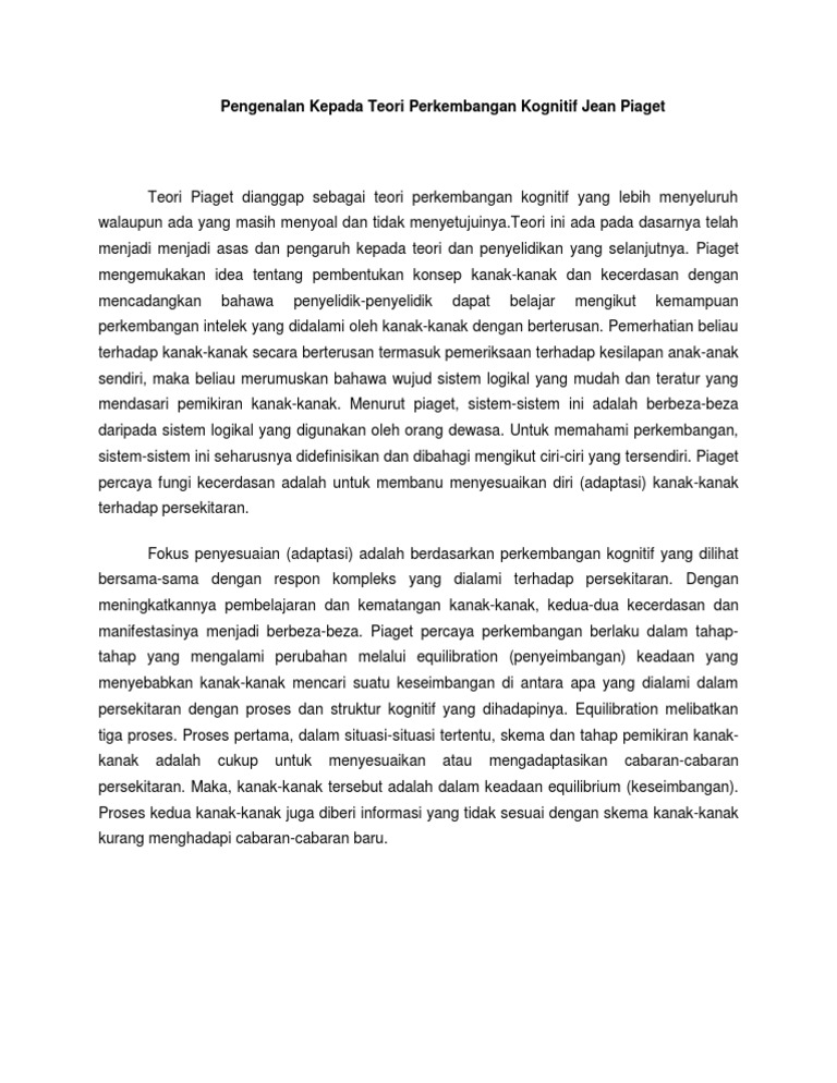 Teori kognitif piaget jean piaget lahir pada 9 agustus 1896 di neuchatel, swiss. Teori perkembangan kognitif piaget seorang bayi mengembangkan kebiasaan mengisap jari. Pada bayi, struktuf kognitif yang dimiliki adalah refleks. Ayahnya adalah ahli sejarah yang mengkhususkan diri di bidang sejarah literatur abad pertengahan. Latar belakang jean piaget piaget merupakan seorang ahli biologi yang cukup terlatih.